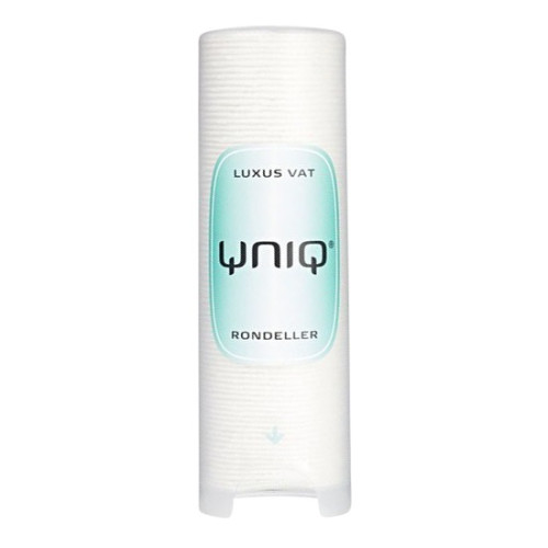 Hver YniQ® dispenser indeholder 80 stk. 2-lags luksus vat rondeller i 100% bomuld.